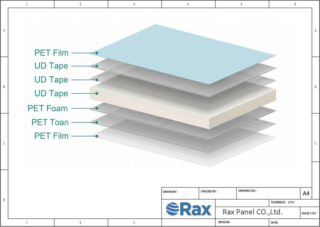 RaxPanel is a technology company based in Hebei, China, integrating new materials and new technologies to provide innovative lightweight solutions. With over 20 years of experience since our founding in 2002, we specialize in custom composite panel solutions and serve clients in over 30 countries. Our CFRT PET Sandwich Panel is an advanced thermoplastic composite panel, developed through thermal lamination that combines continuous fiber reinforced thermoplastic (CFRT) sheets with a PET foam core. This design delivers exceptional performance where traditional materials are insufficient, emphasizing excellent mechanical strength, rigidity, and impact resistance while remaining significantly lighter.